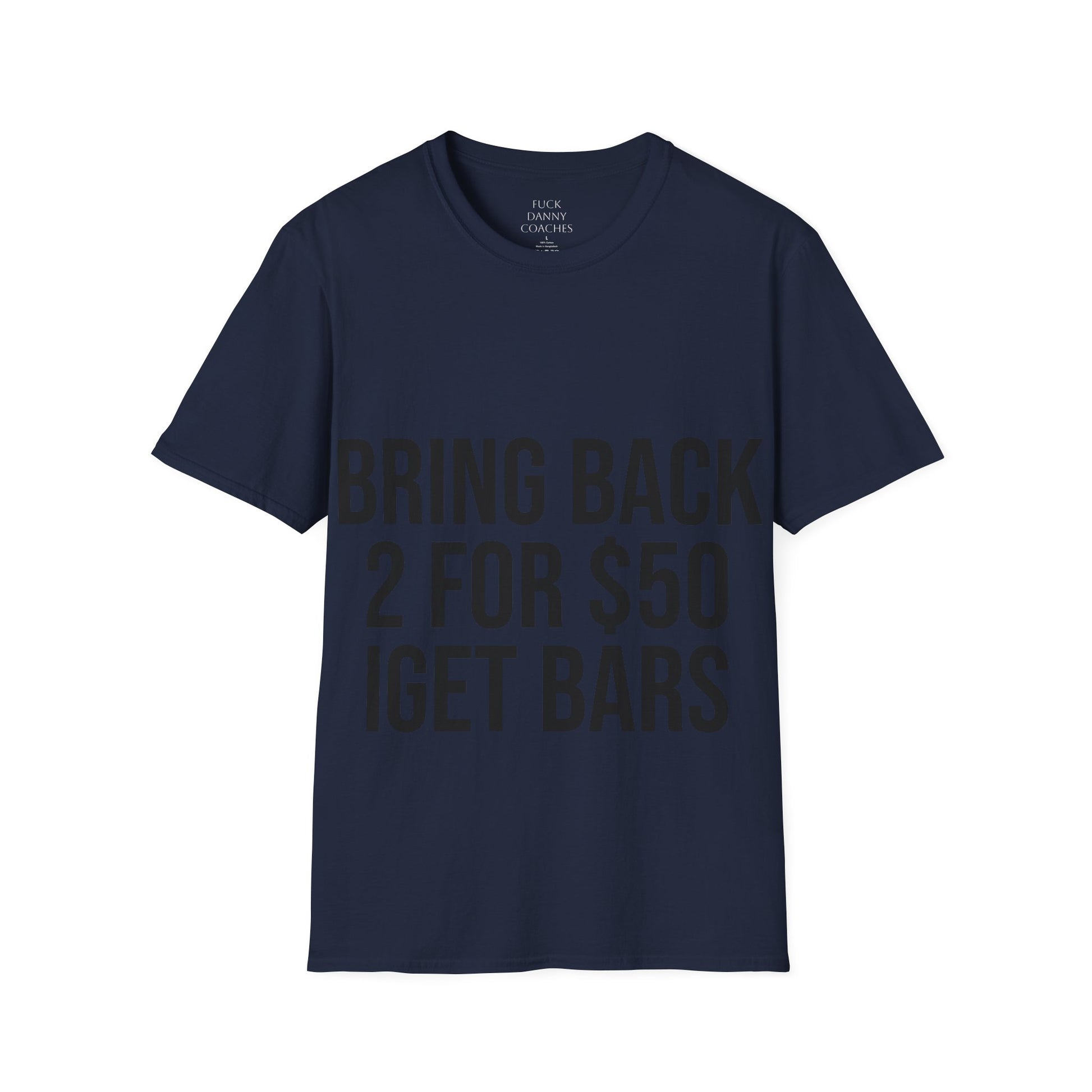 A unique unisex softstyle T-shirt featuring a design of danny coaches promoting an unhealthy lifestyle. Perfect for those who appreciate quirky and ironic fitness humor. Ideal for casual wear and can be a conversation starter. Relevant for fitness enthusiasts and those with a sense of humor. Suitable for gifting during birthdays and casual occasions.